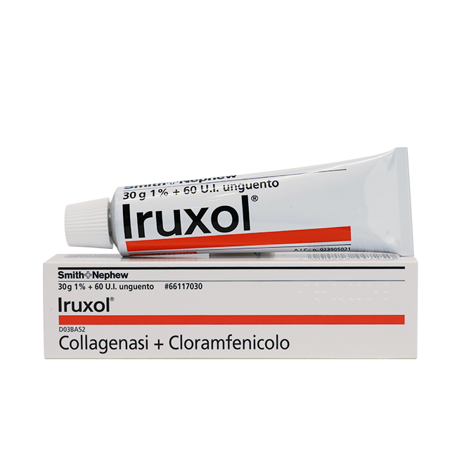 Ируксол относится к группе противомикробных средств для местного лечения поражений кожи и ран путем ферментативного очищения от некротических масс и гнойных налетов. Сочетание активных ферментов и антибиотика широкого спектра действия хлорамфеникола дает возможность очистки ран от некротических масс и предотвращает распространение инфекции, поддерживая таким образом естественный процесс заживления.