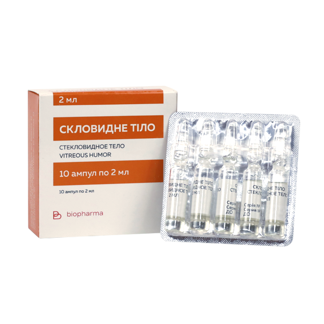 Действующее вещество: 1 ампула содержит 2 мл жидкости, которую получают из замороженного стекловидного тела глаз разных видов убойного скота (крупного рогатого скота, свиней, коз).
