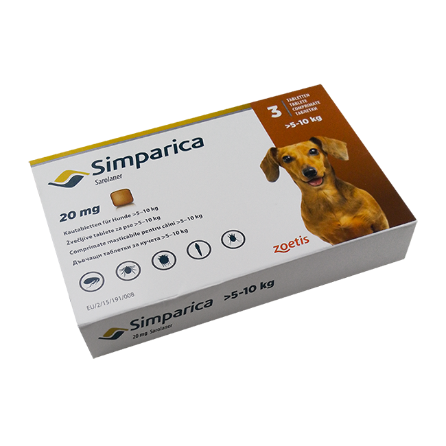 Симпарика для собак 5-10кг 20мг табл. для пер. пр. №3